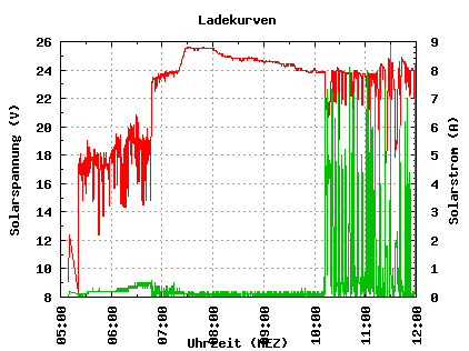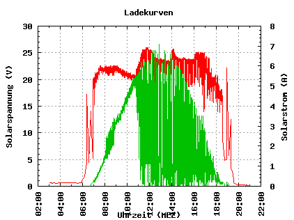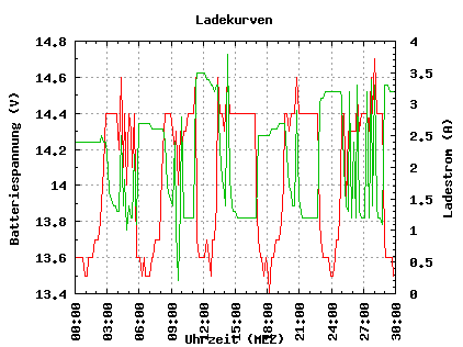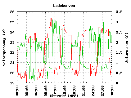 Tagesdiagramm (rot: Spannung, grün: Strom) | |
