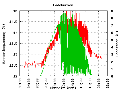 Die damalige Firma Reusolar war die einzige, die auf meine detaillierten Anfragen zu der Anlagenauslegung im Einzelnen antwortete und nicht einfach nur Kataloge schickte - und mich auf diese Zusammenhänge aufmerksam machte und den zu dieser Zeit relativ neuen MPT-Regler empfahl. Das Teil arbeitete 12 Jahre ohne Ausfälle. Was mich im Laufe der Zeit aber störte war die Tatsache, daß ich nie mehr als 13,8 … 13,9V an der Batterie beobachtete, dies ist zwar die korrekte Spannung für Erhaltungsladung, aber nicht die Spannungsgrenze für Vollladung (diese liegt - zeitlich begrenzt - bei 14,4°C).